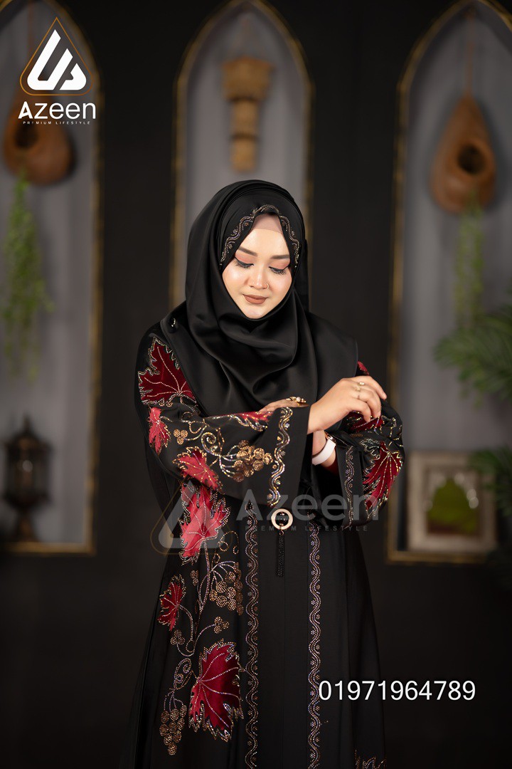 জাফরান ফেব্রিক দিয়ে তৈরি ফুল বডি ভেলভেট এমব্রয়ডারি আর মনোমুগ্ধকর স্টোন লেস-এর সমন্বয়ে গড়ে ওঠা এই Rukaiya Abaya Premium Collection আপনাকে দেবে এক অনন্য স্টাইল ও আভিজাত্যের অনুভূতি। 🌸